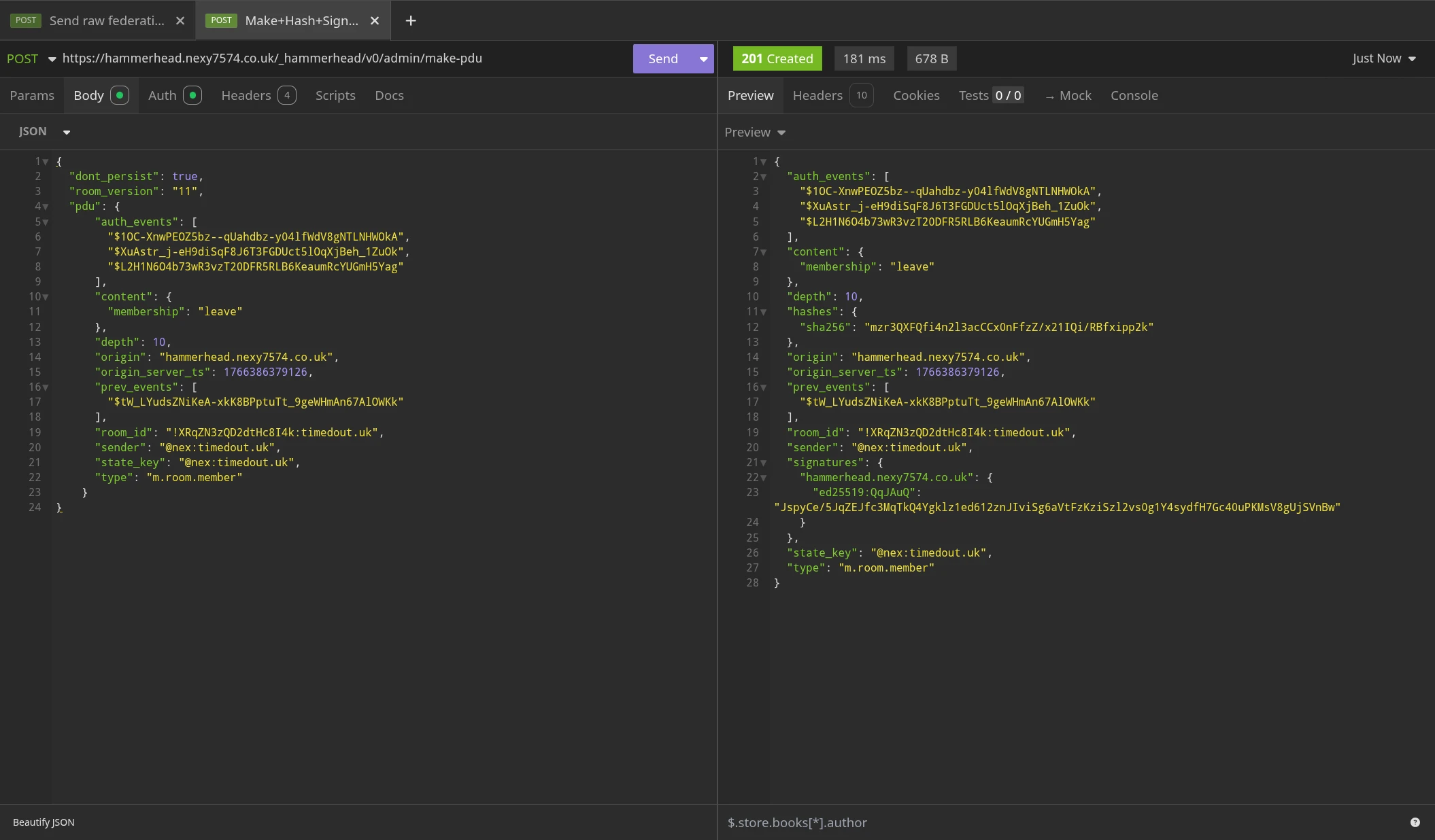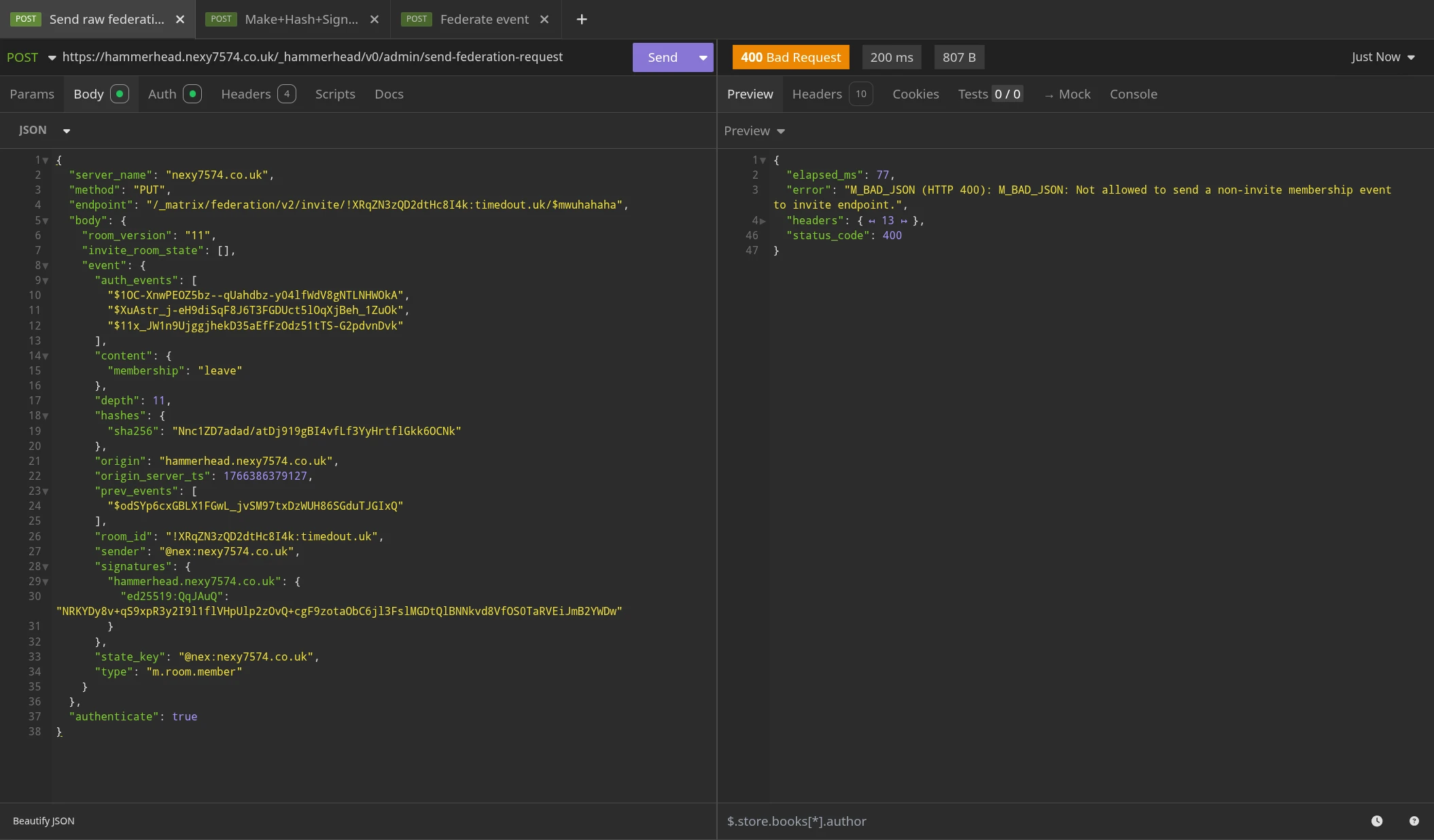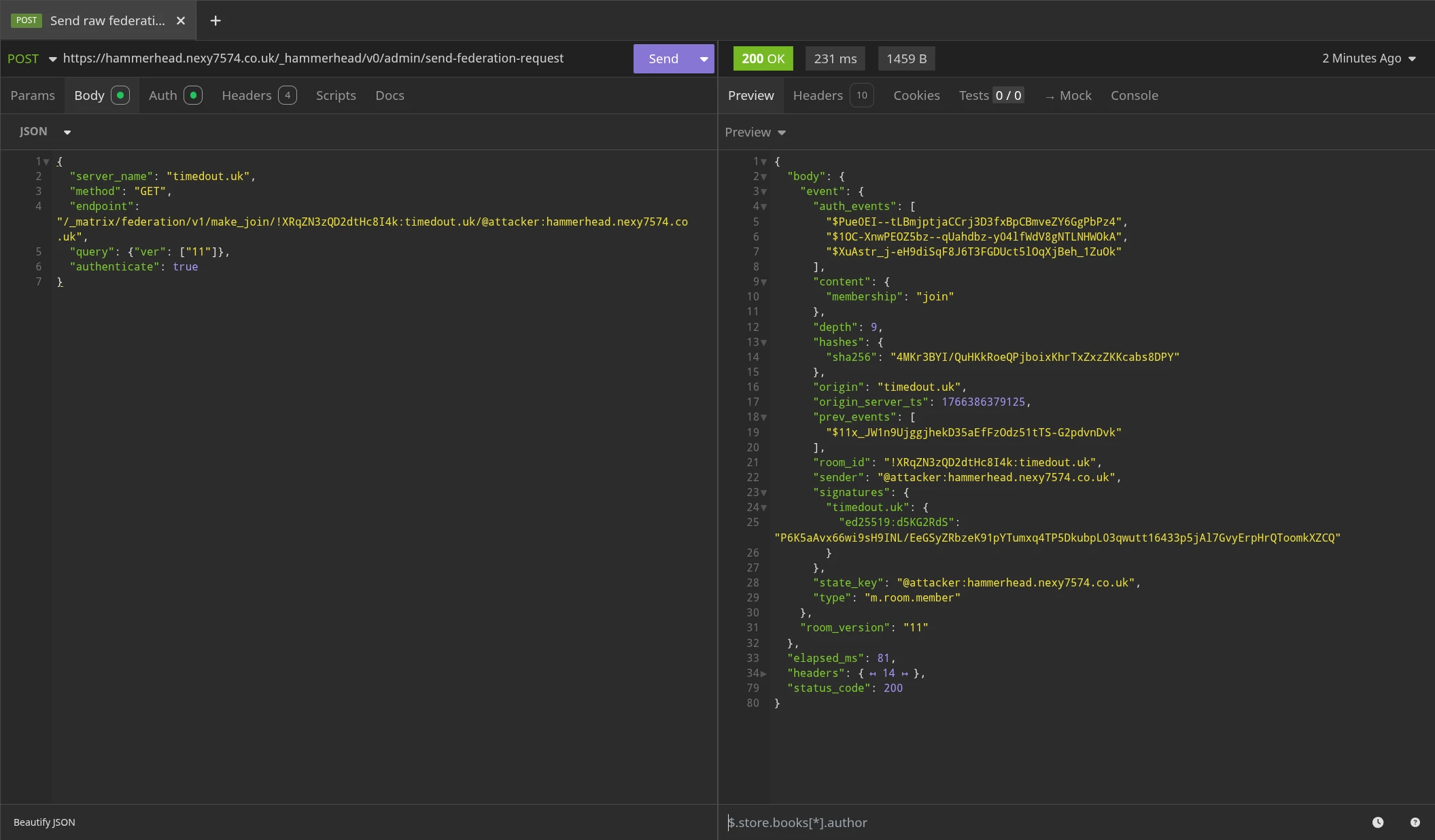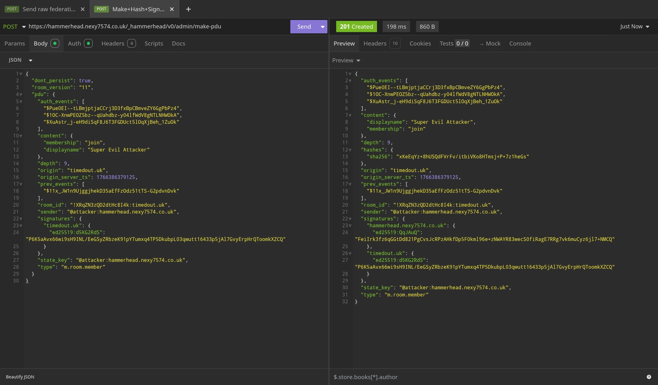 "sender": "@attacker:hammerhead.nexy7574.co.uk",