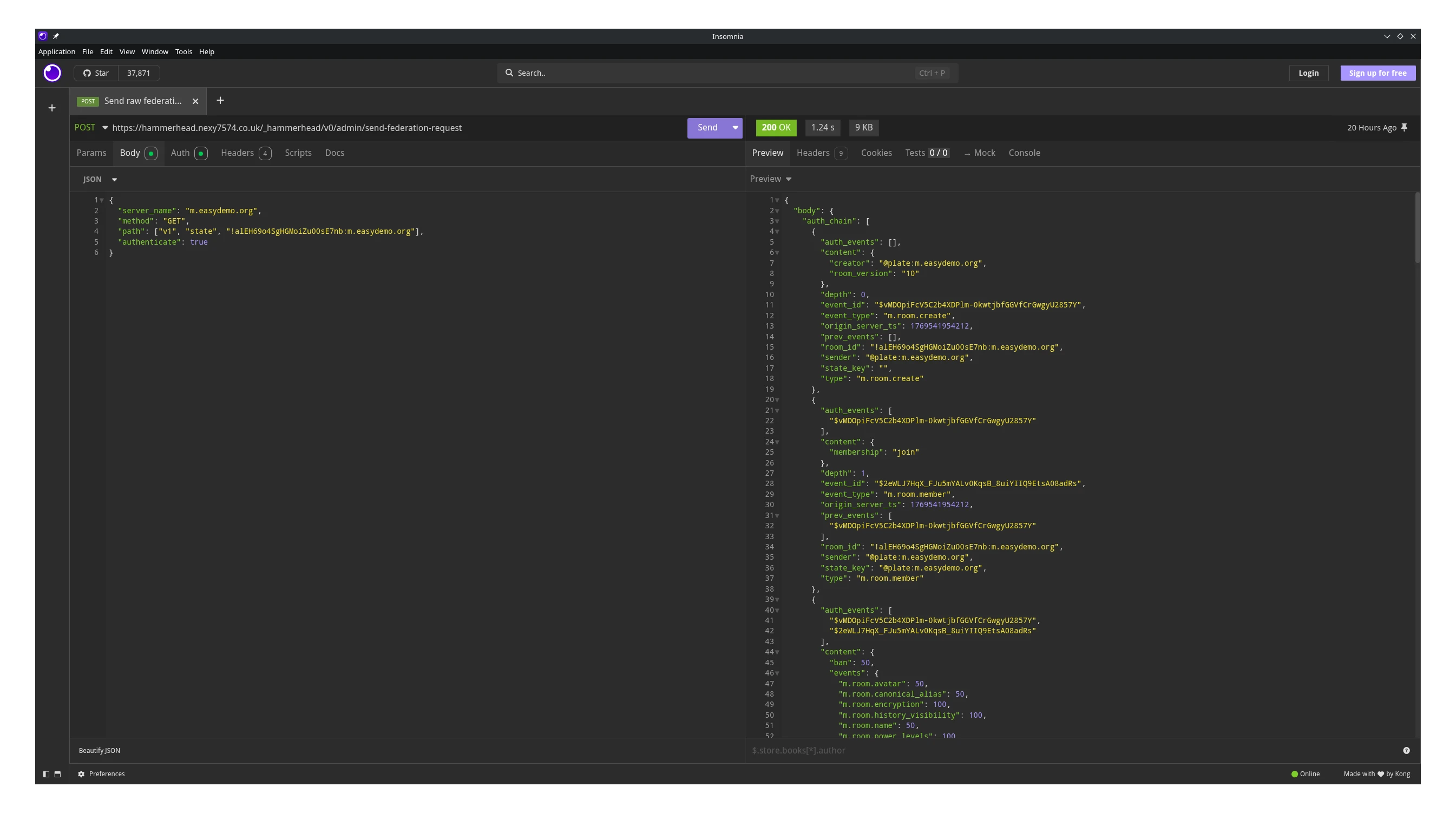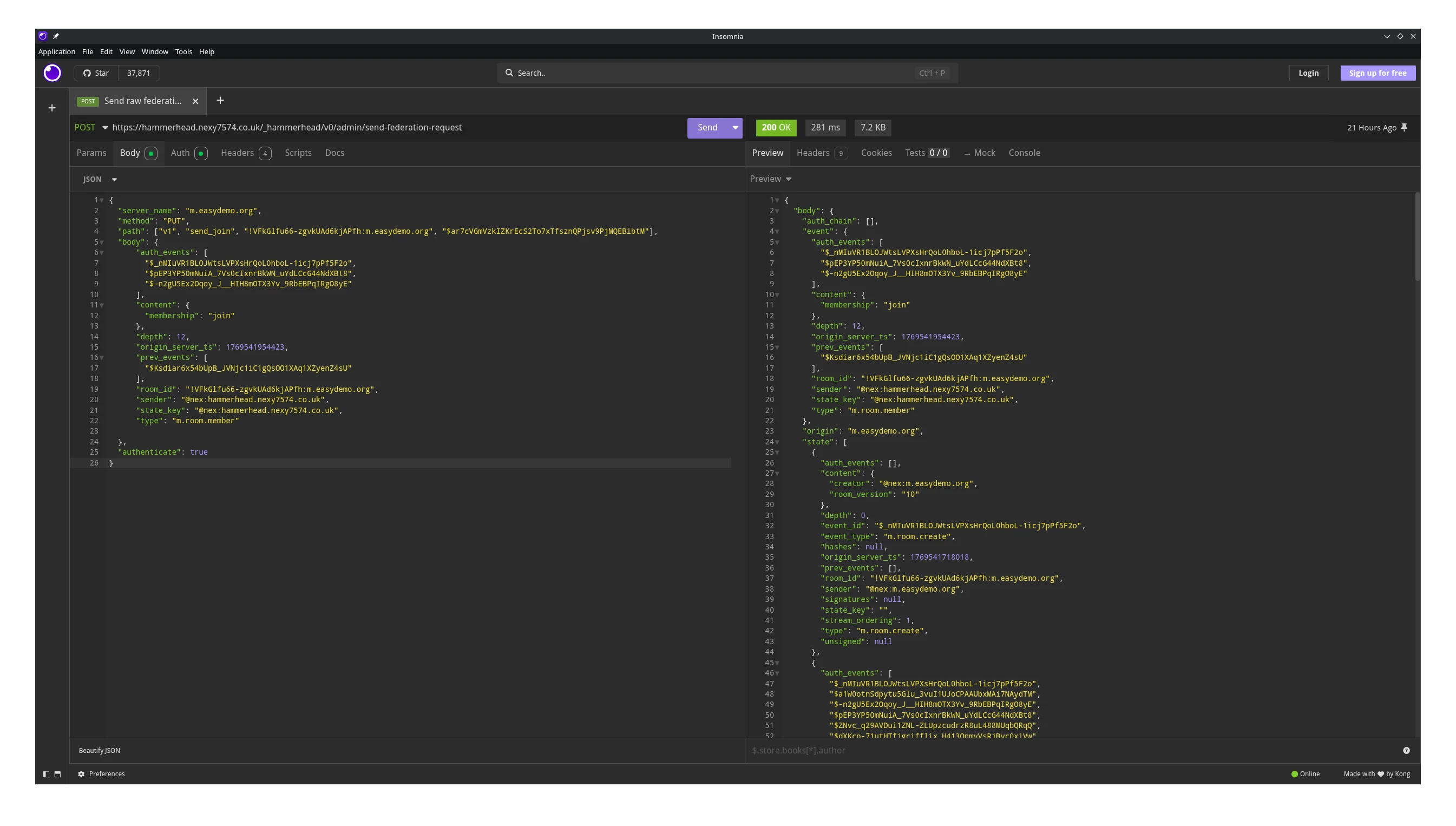 I did also manage to get a send_join in there, which allowed me to download the room’s entire